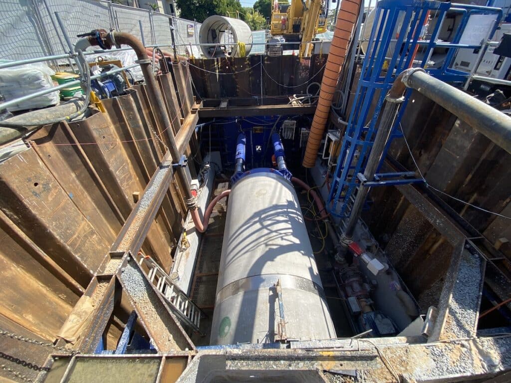 From a technical standpoint, the RCCP was selected for its high compressive strength, durability, performance under jacking loads, and suitability for pressurised potable water, making it well-suited to single pass microtunnelling.