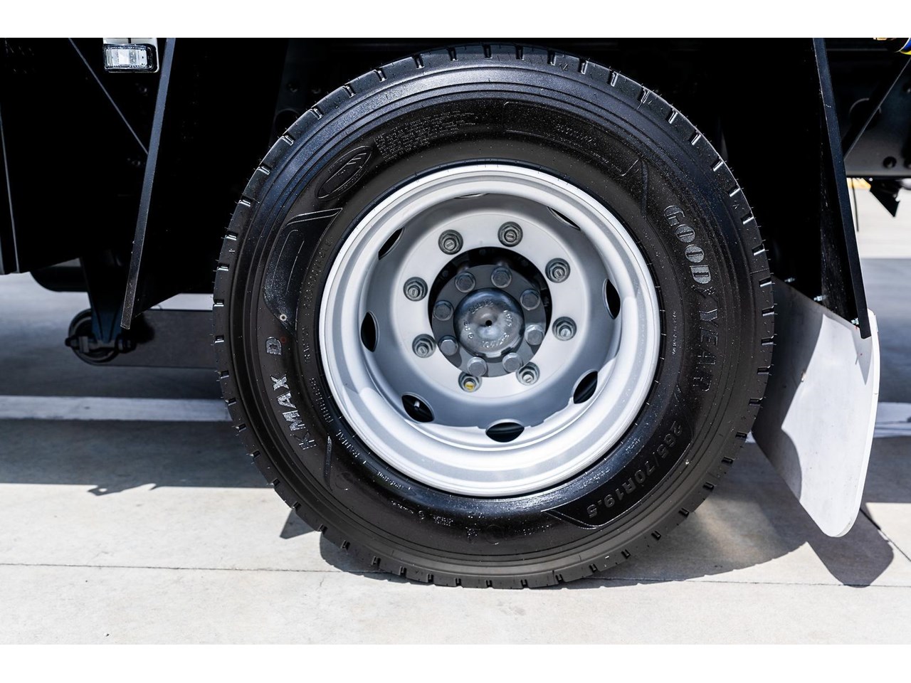 Steel disc rims, 19.5" x 6.75" 8-stud with low-profile Goodyear 265/70R19.5 tyres